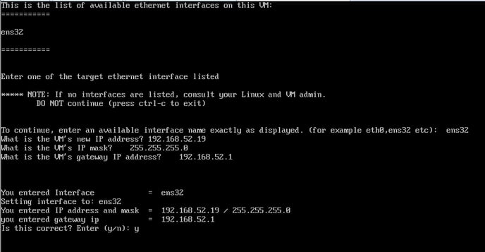 Note: Option 1) is the same option used when the VM is first initialized. You may re-run option 1) to reset both to the server OS and the Software to a new IP address