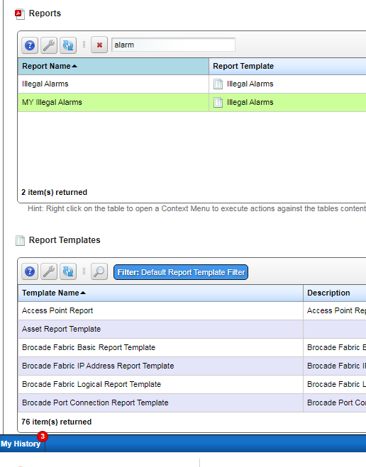 - Go to Reports > in the Reports Portlet > search for the word "alarm"